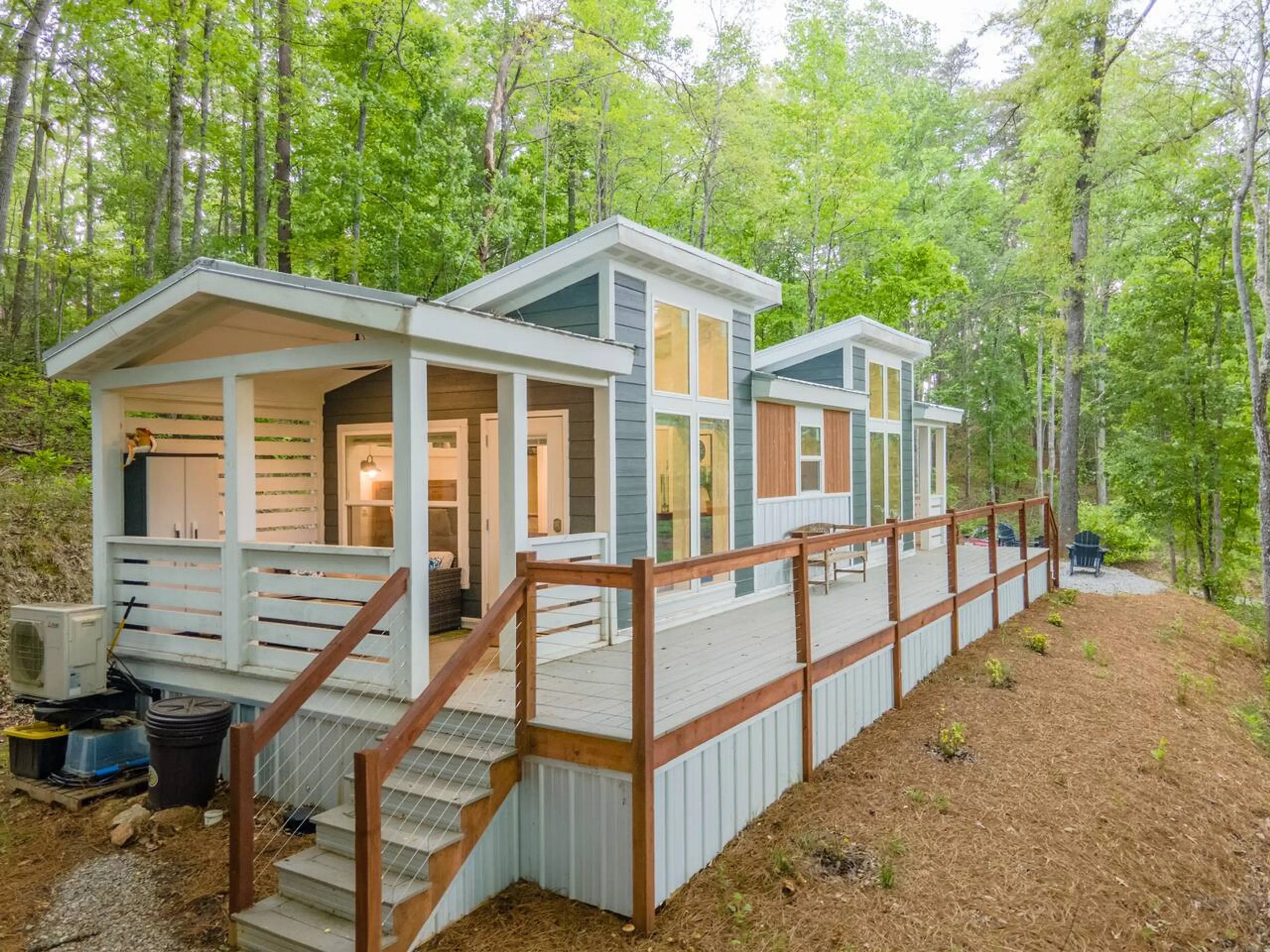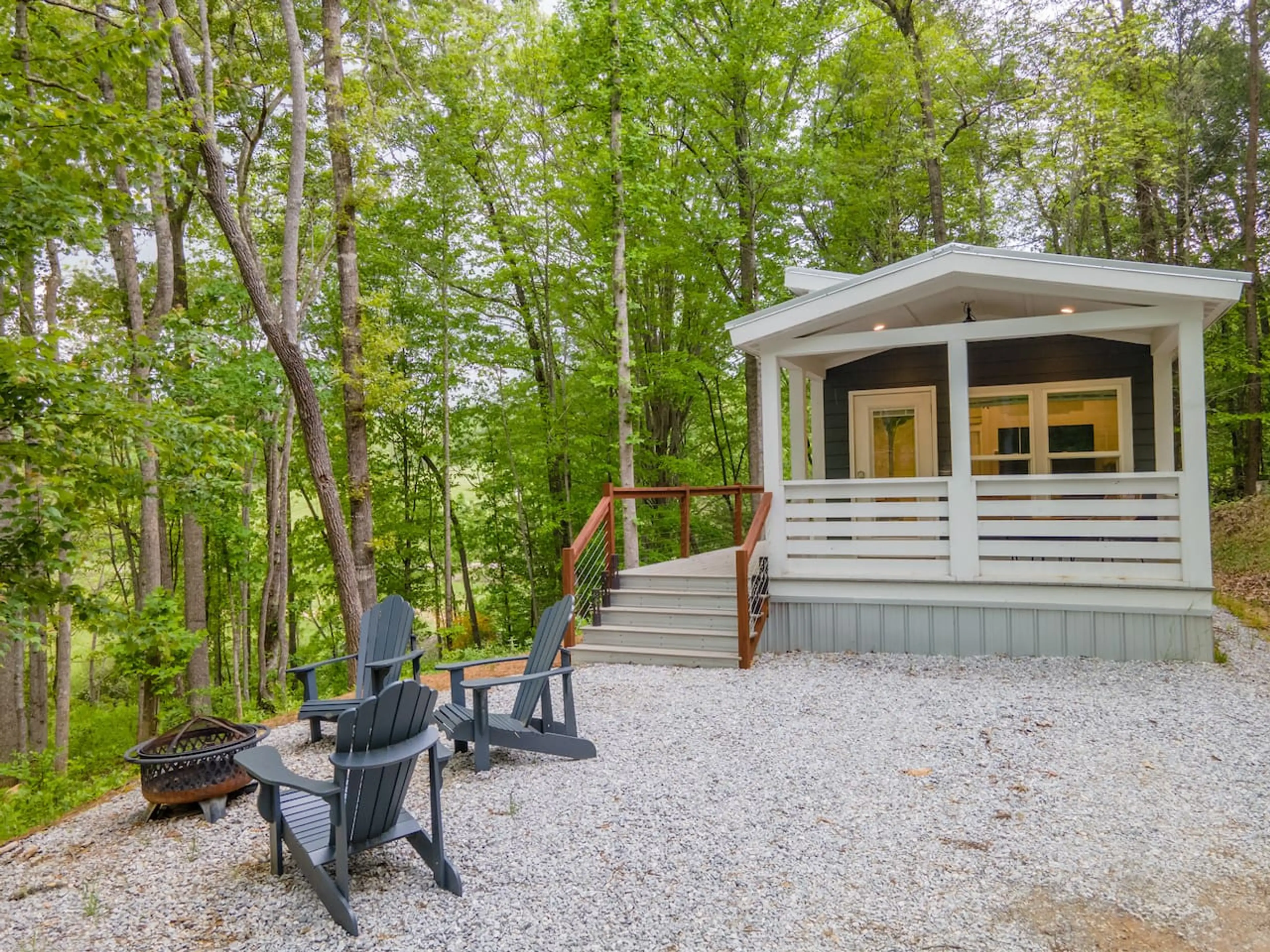 Discover a cozy and stylish retreat designed for two in our modern tiny home, beautifully nestled in the heart of the mountains. Enjoy your morning coffee in front of the electric fireplace or outside on 1 of our 3 sitting areas! Spend your nights cozied up by the firepit outside roasting marshmallo...